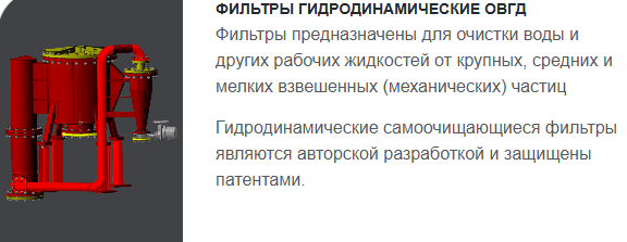 Компания «ФОГОД» обладает полным циклом производства промышленных фильтров: проектирование, разработка РКД, производство, поставка и постпродажное обслуживание. Гидродинамические самоочищающиеся фильтры серии ОВГД, ОСГД, ОМГД — это авторская разработка, защищенная патентами. Фильтры предназначены для очистки воды и других рабочих жидкостей от крупных, средних и мелких взвешенных (механических) частиц.