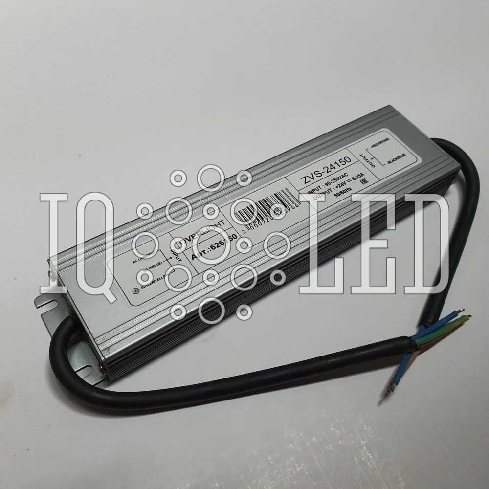 Степень защиты IP: 67; Место использования: помещение/улица; Силовой шнур в комплекте: нет; Гарантия, мес: 6; Размер, ДхШхВ см: 21,5х5,3х2,1; Цвет корпуса: алюминий; Напряжение на выходе V: 24; Материал корпуса: алюминий; Вид тока ACDC: постоянный DC; Сила тока А: 6,25; Напряжение, V: 220; Мощность, Вт: 150; Тип изделия: источник питания