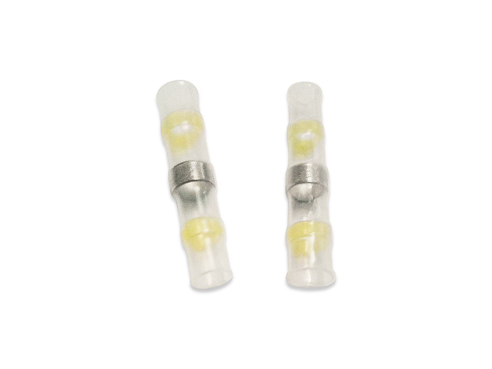 Предназначены для паяного соединения встык многопроволочных медных проводов. Особенности конструкции: - В центре соединителя расположено кольцо низкотемпературного припоя - Во краям соединителя на внутренней поверхности термоусаживаемой трубки интегрированы цветные пояски термоплавкого клея, обеспечивающие полную герметичность соединения после усадки
