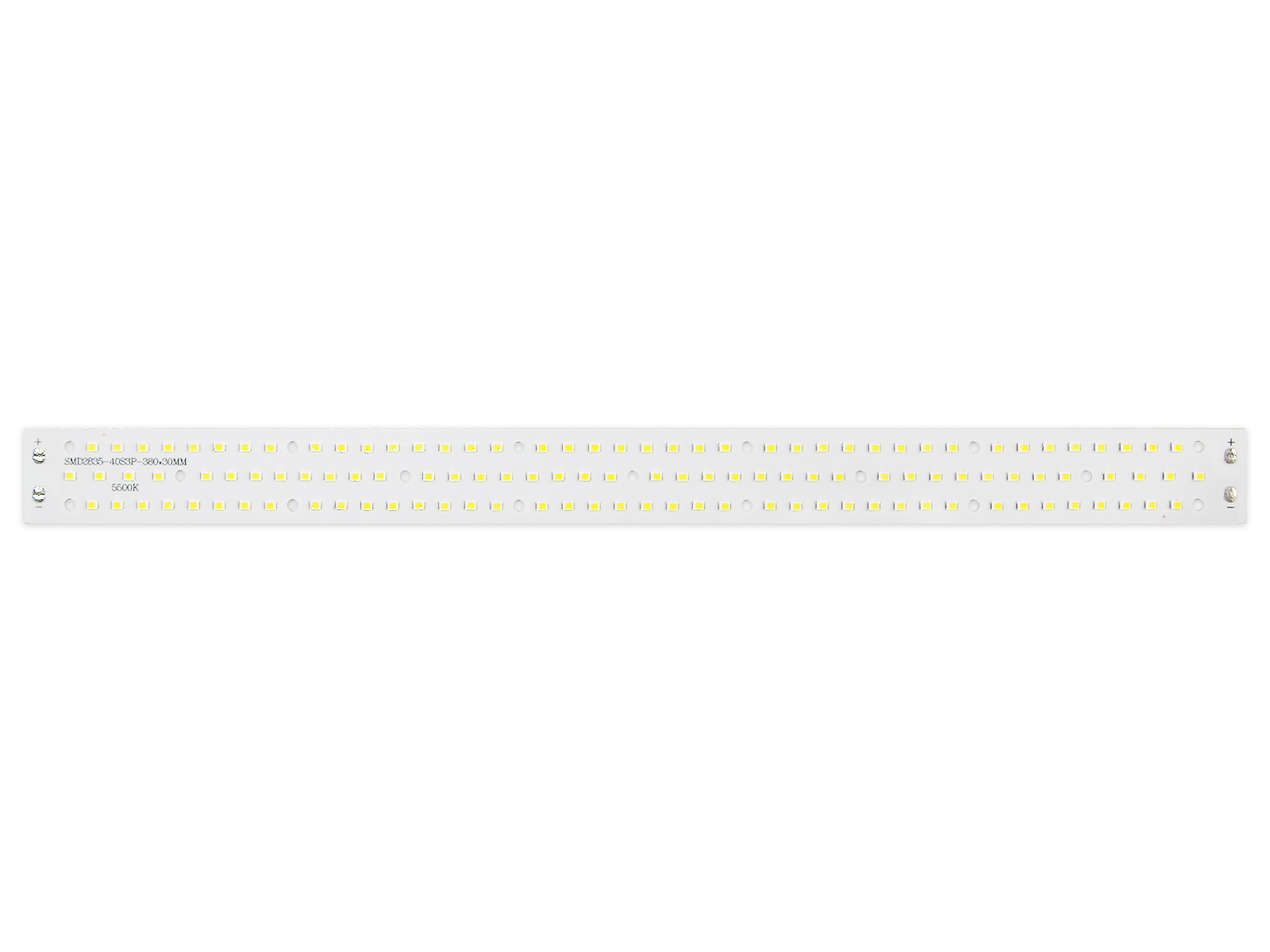 Светодиодный модуль Brillare: SMD2835*120-380x30 состоит из печатной платы на алюминиевой подложке и светодиодов, используется в составе осветительного оборудования в качестве источника света. На обратную сторону модуля может быть нанесена полоса теплопроводящей клейкой ленты, что обеспечивает хороший отвод тепла от светодиодов. Светодиодный модуль имеет 17 монтажных отверстий с диаметром 3,6 мм для крепления к корпусу светильника или рабочей поверхности. Для быстрого и безопасного монтажа рекомендуется использовать пластиковые заклепки. В случае использования металлических заклепок рекомендуется использовать изолирующие шайбы, которые препятствуют повреждению изолирующего слоя светодиодного модуля и токоведущих дорожек. Распределение светодиодов обеспечивает равномерное свечение по всей площади модуля. Светодиодные модули Brillare могут комплектоваться с источниками питания ТМ D-Luce, получая в итоге полноценный комплект для переоснащения/модернизации светильников с люминесцентными лампами, а также для производства новых светодиодных светильников.