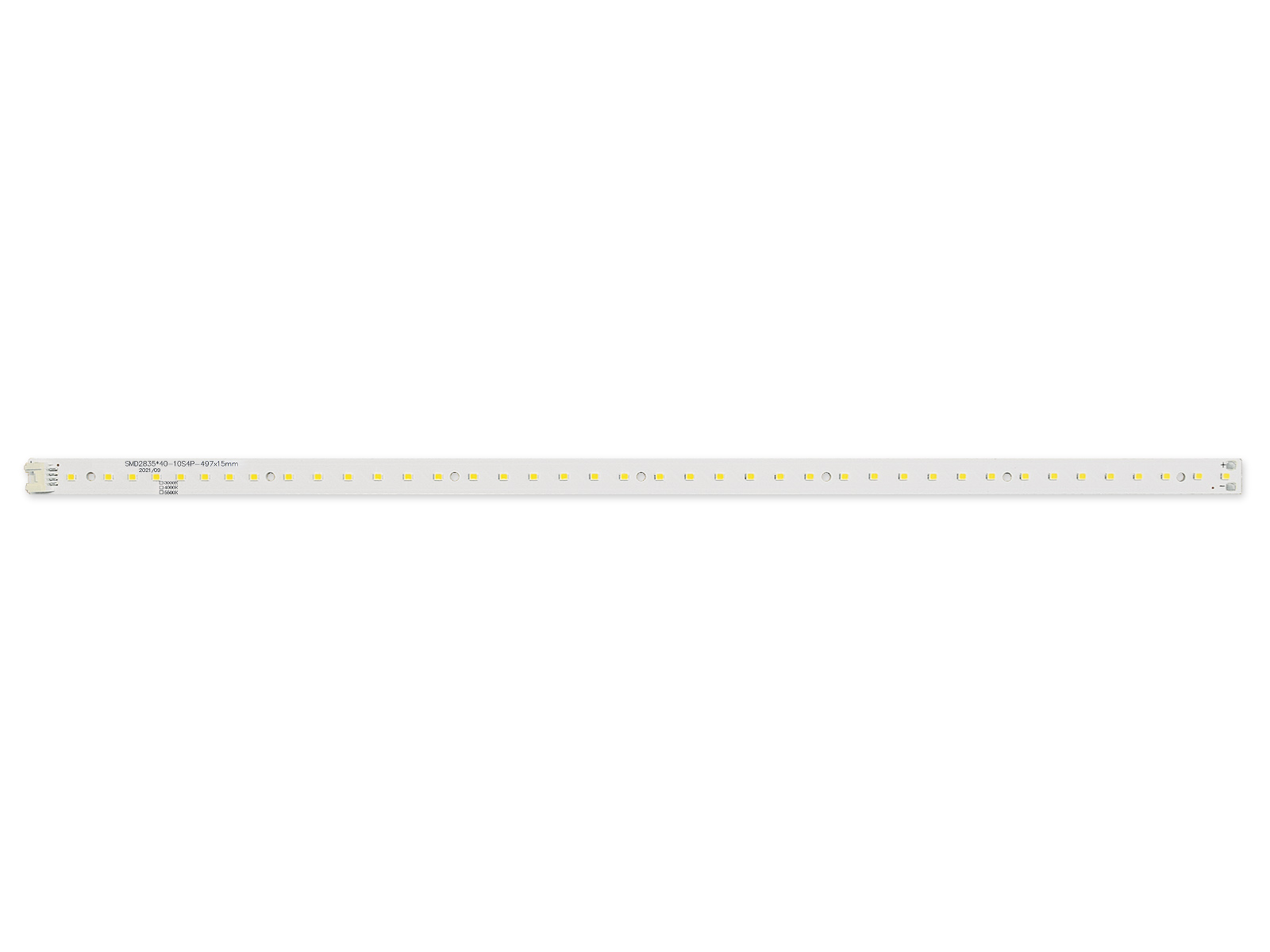 Светодиодный модуль Brillare: SMD2835*40-497x15-4PIN (effective) состоит из печатной платы на алюминиевой подложке, клеммных колодок и светодиодов, используется в составе осветительного оборудования в качестве источника света. На обратную сторону модуля может быть нанесена полоса теплопроводящей клейкой ленты, что обеспечивает хороший отвод тепла от светодиодов. На светодиодном модуле установлены клеммные колодки 4PIN, что в применении с комплектом соединительных проводов упрощает процесс монтажа. Не требует специальных навыков и инструментов. Светодиодный модуль имеет 7 монтажных отверстий с диаметром 3,6 мм для крепления к корпусу светильника или рабочей поверхности. Для быстрого и безопасного монтажа рекомендуется использовать пластиковые заклепки. В случае использования металлических заклепок рекомендуется использовать изолирующие шайбы, которые препятствуют повреждению изолирующего слоя светодиодного модуля и токоведущих дорожек. Распределение светодиодов обеспечивает равномерное свечение по всей площади модуля. Светодиодные модули Brillare могут комплектоваться с источниками питания ТМ D-Luce, получая в итоге полноценный комплект для переоснащения/модернизации светильников с люминесцентными лампами, а также для производства новых светодиодных светильников.