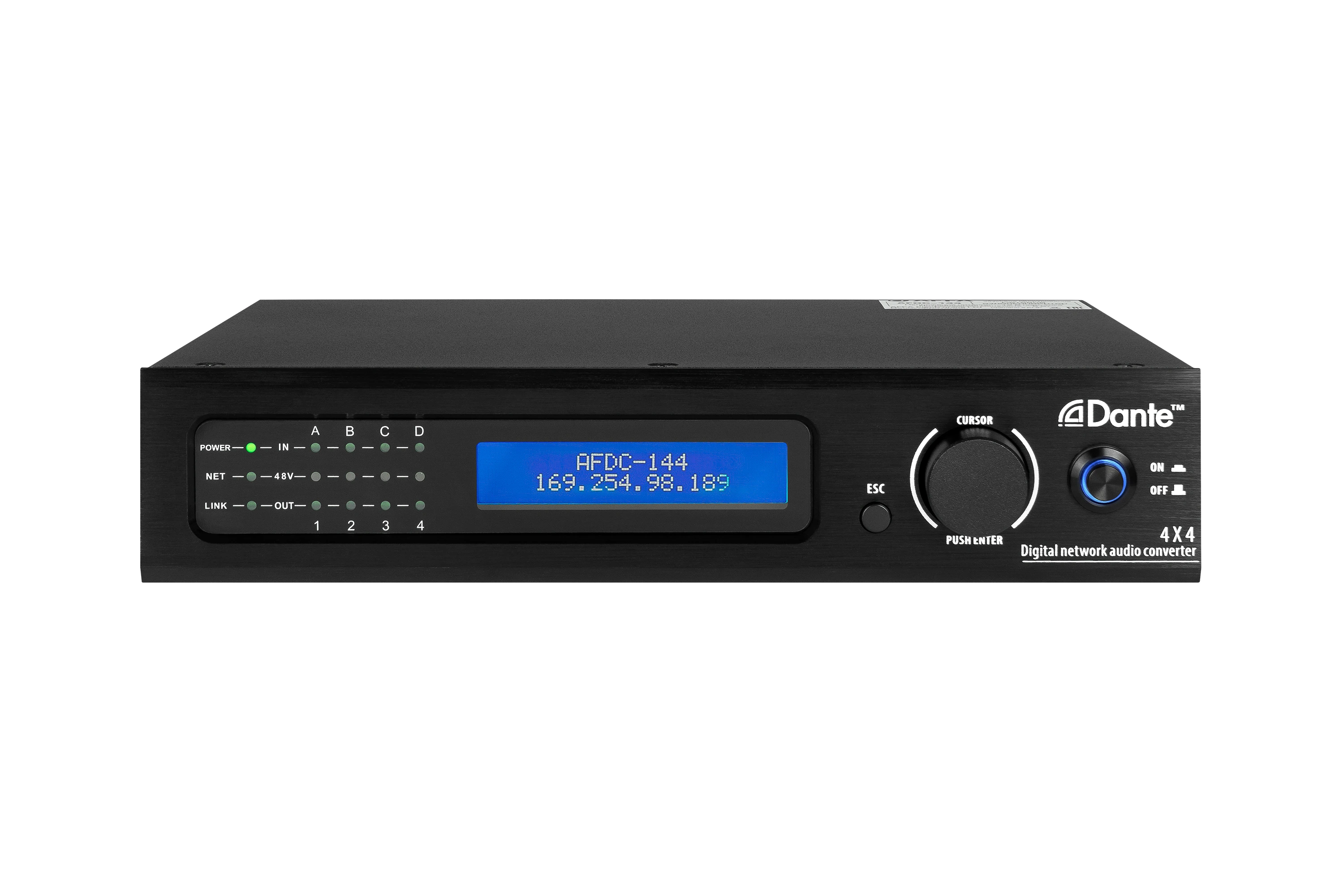 Сетевой аудиоконвертер AFDC-144 предназначен для использования в распределенных системах коммерческого и профессионального озвучивания, использующих IP-сети для передачи аудиосигнала на большие расстояния. Каждый блок AFDC-144 способен одновременно передавать и принимать 4 аудиоканала.
