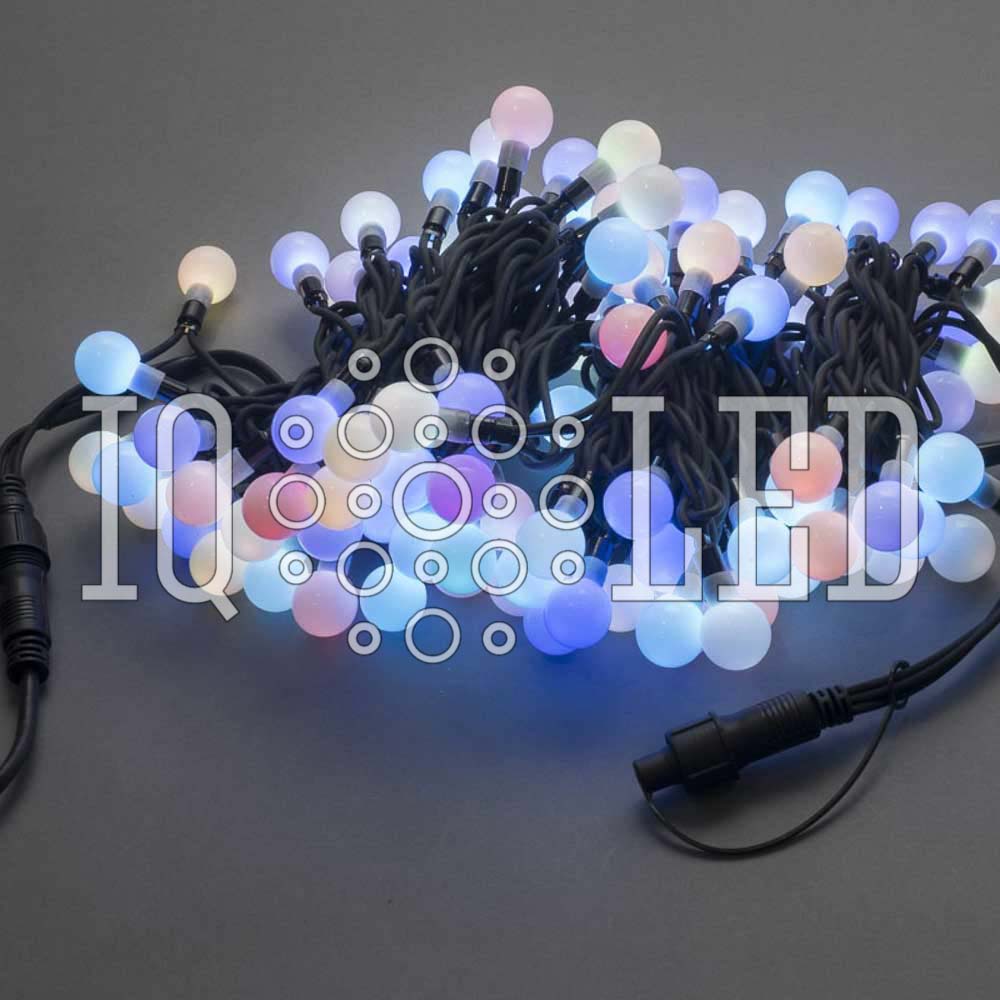 Цвет свечения: RGB (быстрая смена 8-ми цветов); Тип свечения: чейзинг; Материал провода: каучук; Степень защиты IP: 65; Защитный колпачок: есть; Кол-во светодиодов, шт: 100; Цвет провода: черный; Тип светодиодов: dip; Кол-во жил, шт: 3; Расстояние между светодиодами, см: 10; Силовой шнур в комплекте: нет; Гарантия, мес: 6; Срок службы, ч: 40000; Тип остатка: 3; Кол-во соединений в линию, шт: 10; Тип насадки: шарик 2,5 см; цвет насадки: белый матовый; Толщина проводаММ: 3; Напряжение, V: 220; Длина гирлянды: 10; Мощность, Вт: 7
