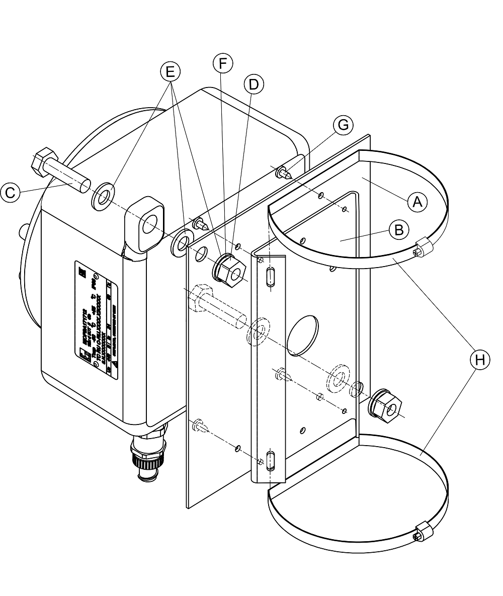 Кронштейн для крепления коробок монтажных КМ-1 ВБ, КМ-2 ВБ, блоков питания уличных БПУ-2-220VAC-24VDC/2,0A ВБ на квадратные и круглые опоры ⌀ 115 ÷ 135 мм (другой размер – под заказ).