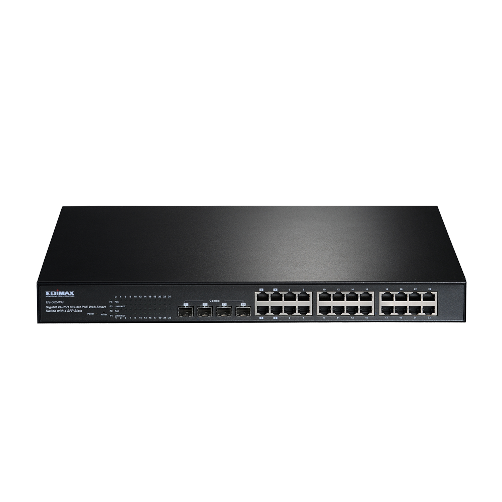 Сетевой коммутатор 24 портовый управляемый Gibabit Ethernet PoE+; Web Smart коммутатор с 4 SFP слотами; 24/24p Gb PoE+, 4 SFP; Суммарная мощность 390 Вт, IEEE 802.3at; RM 1U/19"; 440 × 330 × 44 мм. Три трансформаторных БП.