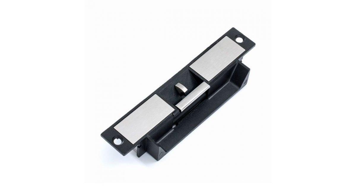 Симметричная огнестойкая электрозащёлка из нержавеющей стали для использования на взломостойких дверях. Сила удержания 1000 кг, 12 V / 24 V DC, 200/100 мА. НЗ / НО. Для лево- и правосторонних дверей. Размер защёлки 137х25х23 мм. В комплект входит запорная планка из нержавеющей стали 179х29х3 мм.