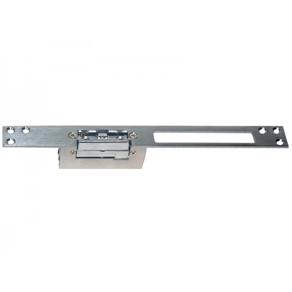 Электромеханическая защелка, нормально закрытая, с механической разблокировкой, 1000mA,  12В (DC),сила удержания 400кг, материал: сталь с покрытием. Накладка в комплекте, 75х19х31мм, накладка: 250x25x3мм, 270 гр.