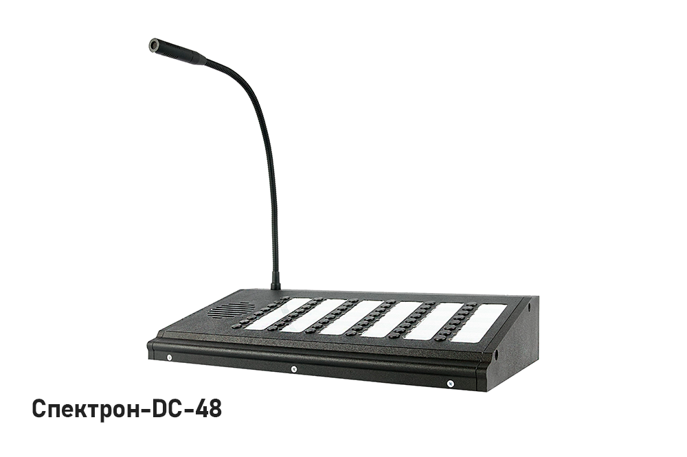 | Диспетчерский пульт громкоговорящей связи Спектрон-DC-48. Предназначен для организации прямой или многоадресной коммуникации в системе громкоговорящей связи. 48 кнопок вызова. Пульт оснащен встроенным микрофоном и динамиком. Материал корпуса алюминиевый сплав с полимерным порошковым покрытием. |