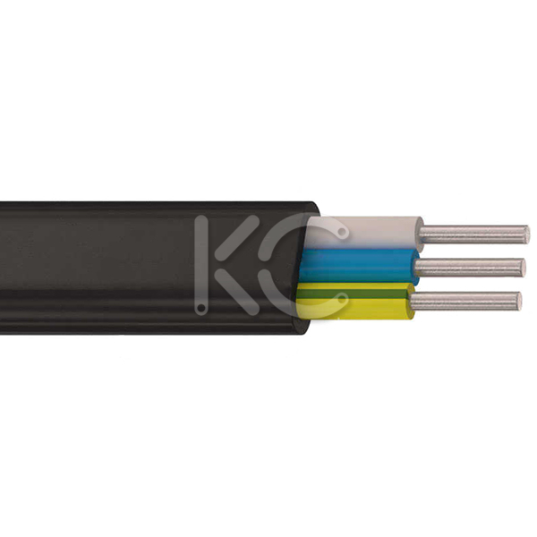 Кабель АВВГ-П 3 х 2,5 представляет собой 3 жилы из алюминиевой проволоки, сечением 2,5 кв. мм. С изоляцией из ПВХ, с внешней оболочкой из ПВХ. Кабели марок АВВГ предназначены для прокладки в сухих и влажных производственных помещениях, на специальных кабельных эстакадах, в блоках, а также для прокладки на открытом воздухе. Кабели не рекомендуются для прокладки в земле (траншеях).
