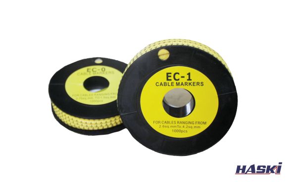 Кабельный маркер МКО EC-1 3.(1,0-2,5мм2) HASKI предназначен для маркировки проводов. Он изготовлен из поливинилхлорида, что обеспечивает ему эластичность и пожаростойкость. Маркер имеет отверстие для проводника и внутренний профиль зубчатой формы, который препятствует перемещению маркера по кабелю.