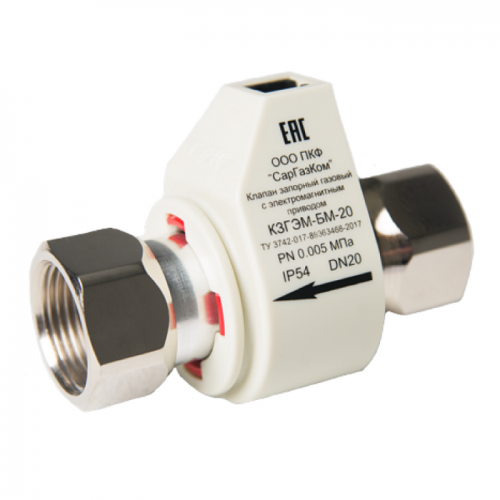 Клапан запорный газовый с электромагнитным приводом КЗГЭМ-БМ (далее клапан) предназначен для использования в качестве запорного устройства трубопроводных магистралей и газогорелочных устройств с рабочей средой в виде природного газа по ГОСТ 5542-87, паровой фазой сжиженного углеводородного газа по ГОСТ Р 52087 2003 или воздуха с давлением до 0,005 МПа ( до 0,05 кгс/см²). К газопроводу клапан КЗГЭМ-БМ крепится стальными оцинкованными гайками.