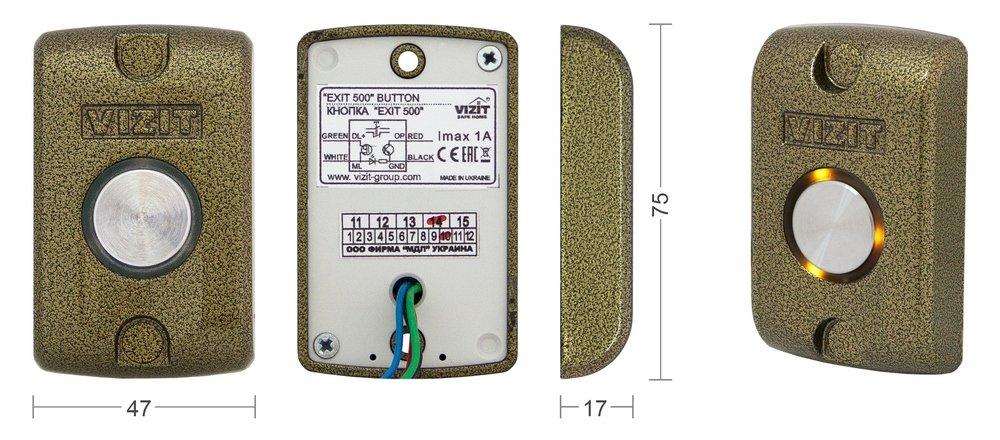 Кнопка управления выходом и аварийным разблокированием электромагнитного замка. Ресурс - не менее 500 000 циклов срабатываний. Встроенная подсветка.