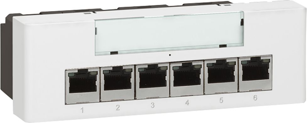 Коммутатор 077901 Ethernet 10/100 base T, встраиваемый, программа Mosaic, 10/100 BASE T, 6+1RJ 45 - PоE - 6 модулей - белый Транспортные характеристики Вес: 0.24