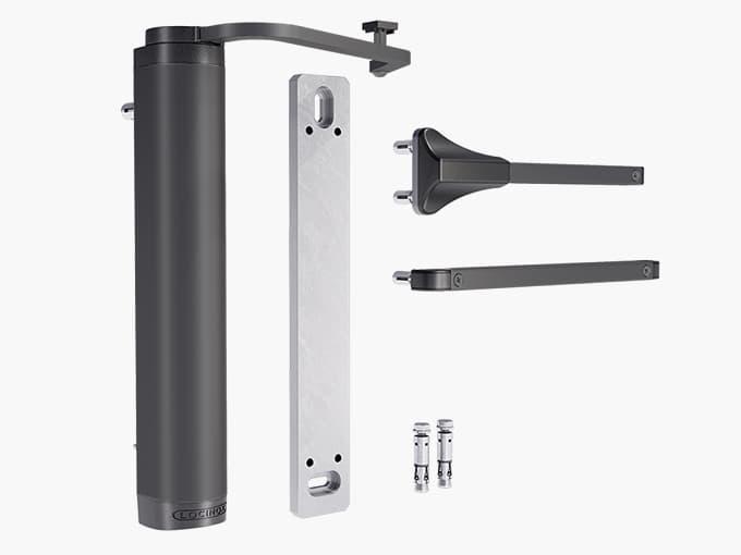 Доводчик для створок весом до 150 кг и шириной 150 см. Крепление на стену. Микро-регулировка скорости и финальной доводки,  для створок с петлями на 90° и на 180°. Корпус из алюминия с порошковым покрытием, идеально подходит для использования на улице -30...+70 °С.