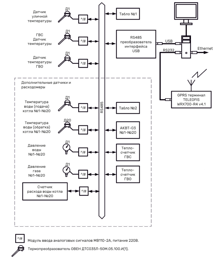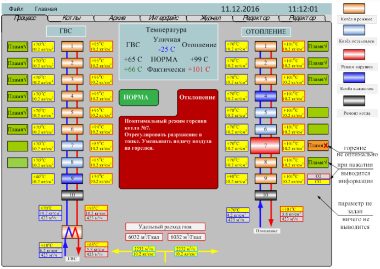 Комплекс диспетчеризации и ресурсосбережения котельной КДРК предназначен для контроля режимов работы и технического состояния котлоагрегатов котельной, а также выдачи сообщений о выходе параметров за установленные режимной картой значения.