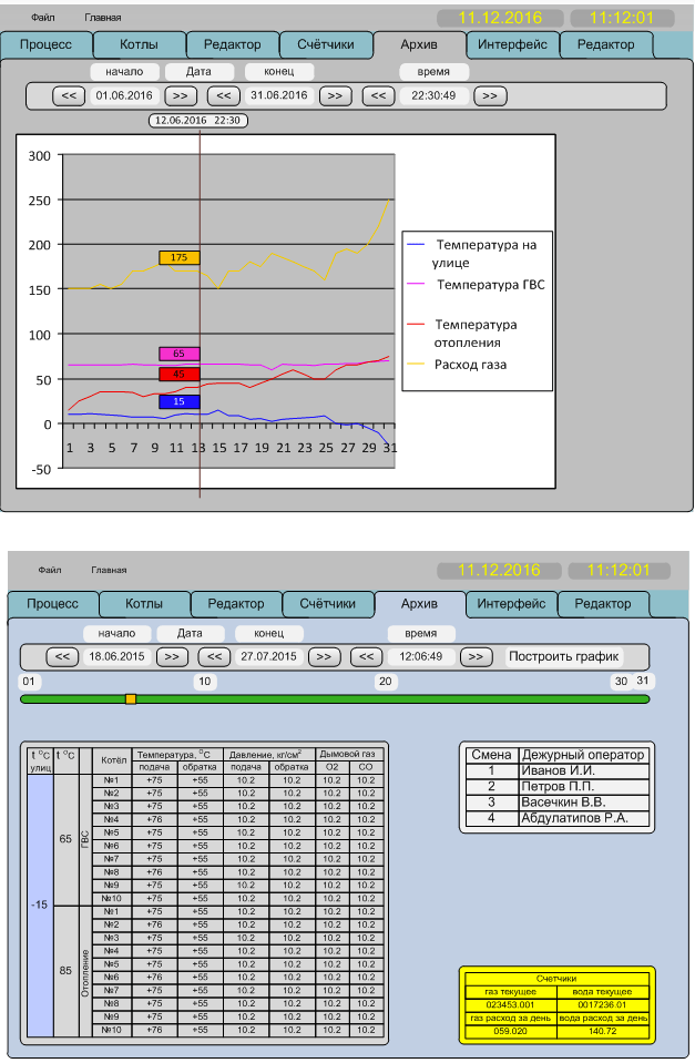 Взаимодействие оператора с оборудованием АРМ обеспечивается системой мнемосхем и стандартных видеограмм. Мнемосхемы процесса в максимальной степени отражают структуру объекта и его текущее состояние: