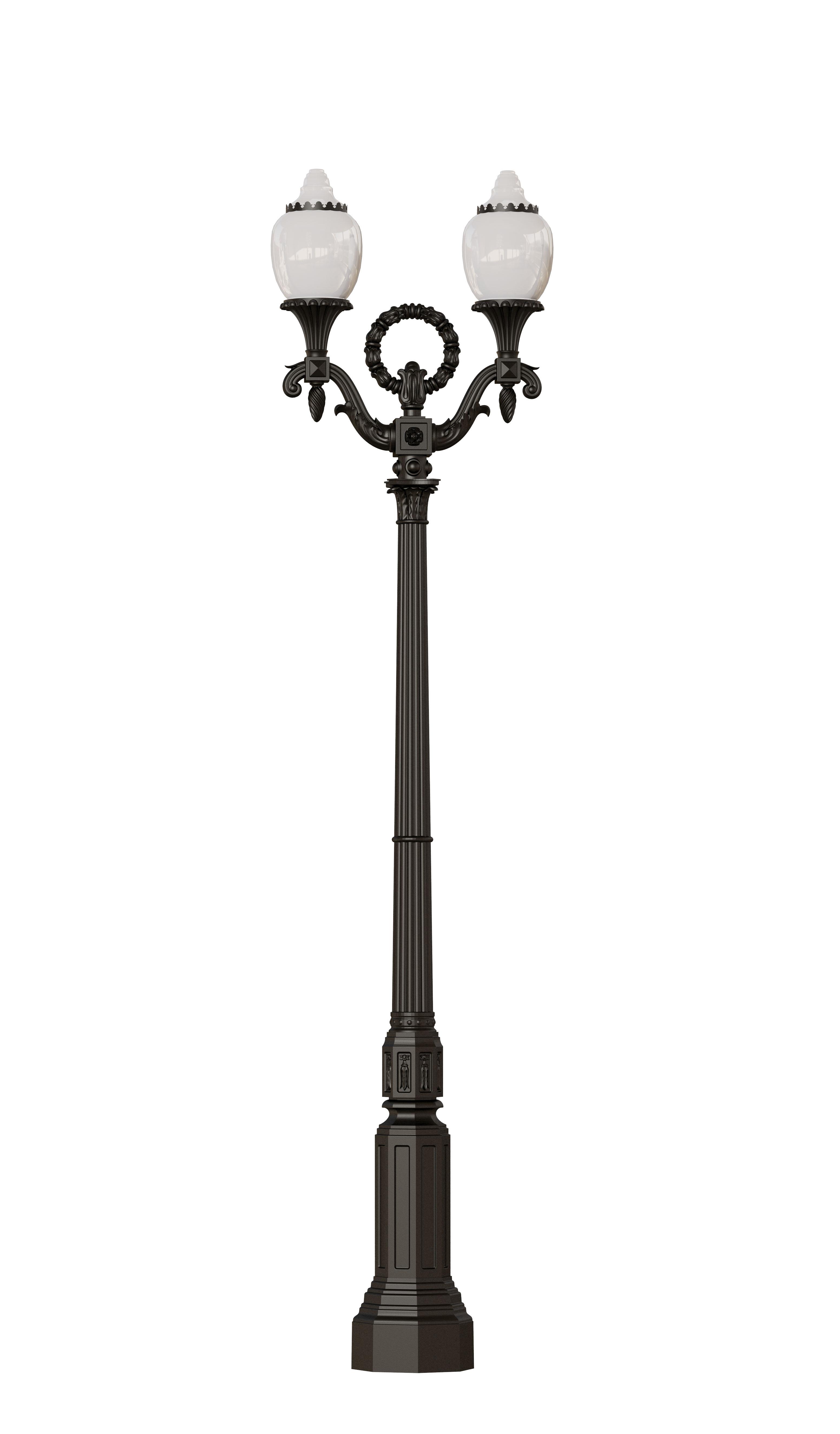 тумба цоколя, тело цоколь, навершие цоколя, декоративные литые трубы (нижняя и верхняя), капитель, разветвитель кронштейна, кронштейны, навершие стойки (венок) – высокохудожественное литье, серый чугун, СЧ 20, ГОСТ 1412-85