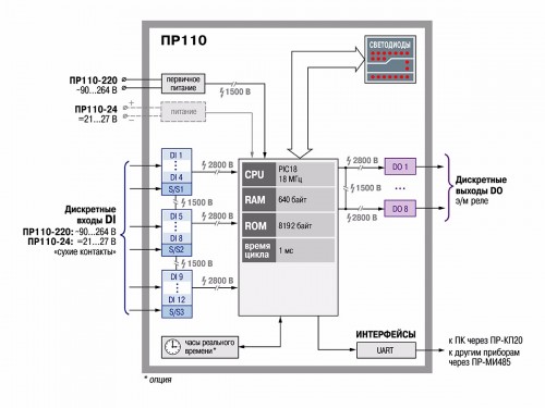 | ПР110-220.12ДФ.8Р | питание прибора и входов 220В | ||||||