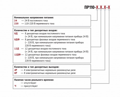| ПР110-220.12ДФ.8Р-Ч | питание прибора и входов 220В, имеются часы реального времени | ||||||