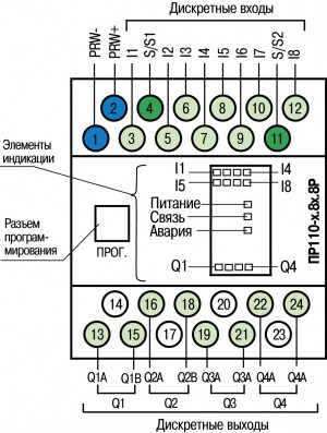 | ПР110-24.12Д.8Р | питание прибора и входов 24В | ||||||