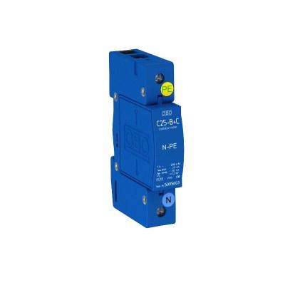 Для монтажа в главном и вспомогательном корпусах распределительных щитов. Применяют для сооружений III и IV классов молниезащиты - для защиты от перенапряжений и уравнивания потенциалов; - токоотводная способность до 40 кА (8/20) на полюс; - штекерный разрядник с динамическим предохранителем и оптической индикацией функций; - разрядник с мощным варистором.