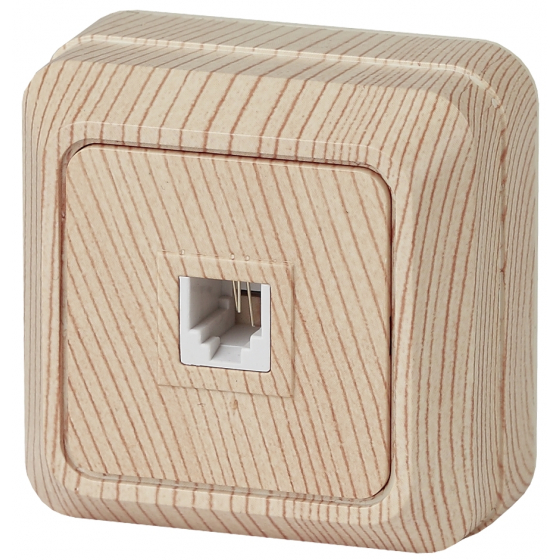 Розетка серии Intro Quadro открытой установки цвет сосна 2-302-1116А 250В. Устройство выполнено из термопласта, керамики, стали и латуни, оснащёно винтовыми зажимами.