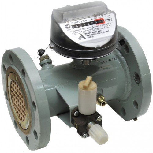 Счетчик газа для максимального значения объемного расхода 250 м³/ч и давления среды до 1,6 МПа (16 кгс/см²) с «НЧ» выходом, предназначенный для эксплуатации при температуре от минус 40 °С, материал — сталь, диапазон измерения — 1:20: СГ16МТ-250-40-С-2 ТУ4213-001-07513518-94.