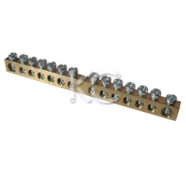 Шины нулевые используются в щитовом оборудовании для подсоединения нулевых рабочих и нулевых защитных проводов. Нулевая шина 6х9 (14/1) КС с креплением по центру.