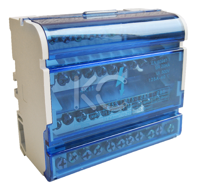 Каждая шина отдельно изолирована. Кросс-модули изготавливаются с четырьмя шинами, рассчитанными на токи до 125 А. При подключении к шине медных многожильных проводов необходимо оконцевать их наконечниками-гильзами.