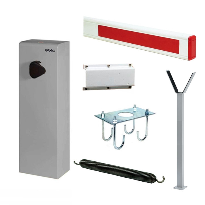 Комплект шлагбаума до 6м 617STD. Состав: FAAC 104849 617STD/6 Тумба шлагбаума со встроенной платой управления, включает крепление для прямоугольной стрелы, FAAC 490095 FOUNDATION Монтажная пластина, FAAC 721144 SPRING FOR 6 M Балансировочная пружина, FAAC 428063 BOOM OF 6 M Стандартная прямоугольная стрела 6 м, FAAC 728487 Вилочная опора для стрел.
