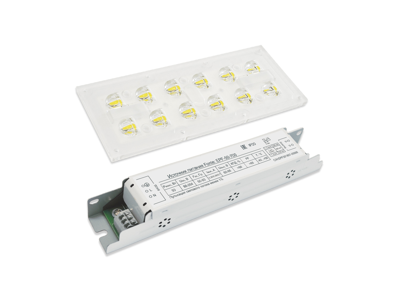 Светодиодный комплект Affina Lens 12 LP представляет собой набор из светодиодного модуля Brillare: SMD5050*12-149x47 (ТМ D-Luce) и источника питания Fonte: EPF-50-700. Благодаря использованию высококачественных электронных компонентов, нашим инженерам удалось добиться высоких световых и электрических показателей. Комплект может поставляться с источником питания с дополнительно установленной защитой от входного напряжения до 380 вольт (-P) и с улучшенным фильтром ЭМС (-E).