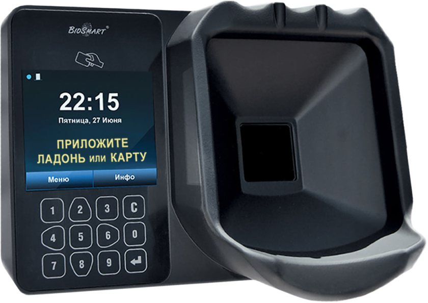 Терминал Biosmart PV-WTC предназначен для организации пропускного режима и учета рабочего времени по уникальным биометрическим особенностям строения вен ладоней человека и/или картам различных форматов. Максимальное количество пользователей - 1 000 000. Максимальное количество ладоней - 300 000 Максимальное количество событий -10 000 000 Встроенный считыватель карт EM-Marin Интерфейсы USB, Ethernet, (IEEE 802.3, 10BASE-T, IEEE 802.3u, 100BASE-TX, 1000BASE-TX) Сенсорная клавиатура, ЖК индикатор. Питание 12 В, 1 А. Температурный диапазон от 0 до +50 °C. Исполнение: пластиковый корпус для настольного применения Модификации контроллера: EM - Считыватель Em-Marine MF - Считыватель Mifare HD - Считыватель HID Prox IC - Считыватель HID iClass LG - Считыватель Legic