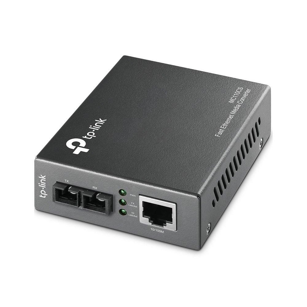 Медиаконвертер 10/100 Мбит/с RJ45 - 100 Мбит/с разъём SC (одномодовый оптоволоконный кабель), полнодуплексный, до 20км, переключающийся адаптер питания, возможность установки в шасси TL-MC1400