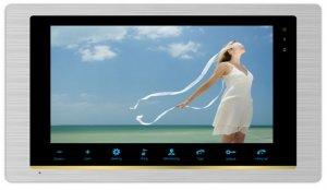 Монитор видеодомофона, цветной, 10.1" TFT LCD (16:9) разрешение 1024x600, до 2х вызывных панелей, до 4х мониторов в системе. Функция автоответчика и детектора движения по 1 каналу; расширение VM-10, до 2х аналоговых камер, длительность разговора 120 сек., запись фото на SD-card до 32 Гб, AC 100-240 В, -10°С до +60°С, размер 310х197х26,8 мм, 1100 гр. Цвет: серебристый.