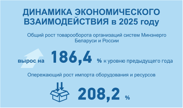 По итогам 2025 года товарооборот организаций системы Министерства энергетики с Российской Федерацией продемонстрировал значительный рост - 186,4% к уровню предыдущего года. Импортные поставки развивались опережающими темпами (208,2%), при этом в сфере услуг сохраняется стабильная динамика взаимодействия.