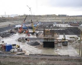Высота забетонированного яруса составляет 8 метров, объем уложенного бетона - приметно 1500 кубометров. Работы ведет ООО "Трест РОССЭМ".